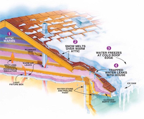 Fowler's Roofing crews have all been well trained, with many years of experience. With the right tools to safely remove built up of snow and ice on your roof. With heavy snowfall, there comes a danger of roofs collapsing under the weight of ice and snow if it is allowed to accumulate. When snow accumulates on a roof, a cycle of melting and refreezing occurs. This refreezing gradually forms ice dams, a growing heap of ice that blocks path of the melted snow. The melted snow that pools up behind it can leak back under the roof shingles and into your home which can cause water damage to the interior. Allow our trained professionals take care of this before any damages occur.